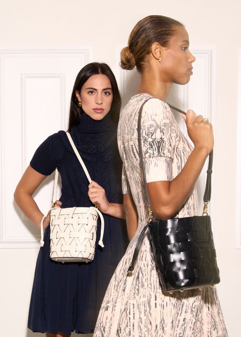 The Charlotte reimagines the bucket bag with refined hand-woven leather and an inner gabardine pouch with drawstring closure. Comfortable to carry on the shoulder or crossbody thanks to its wide handle.