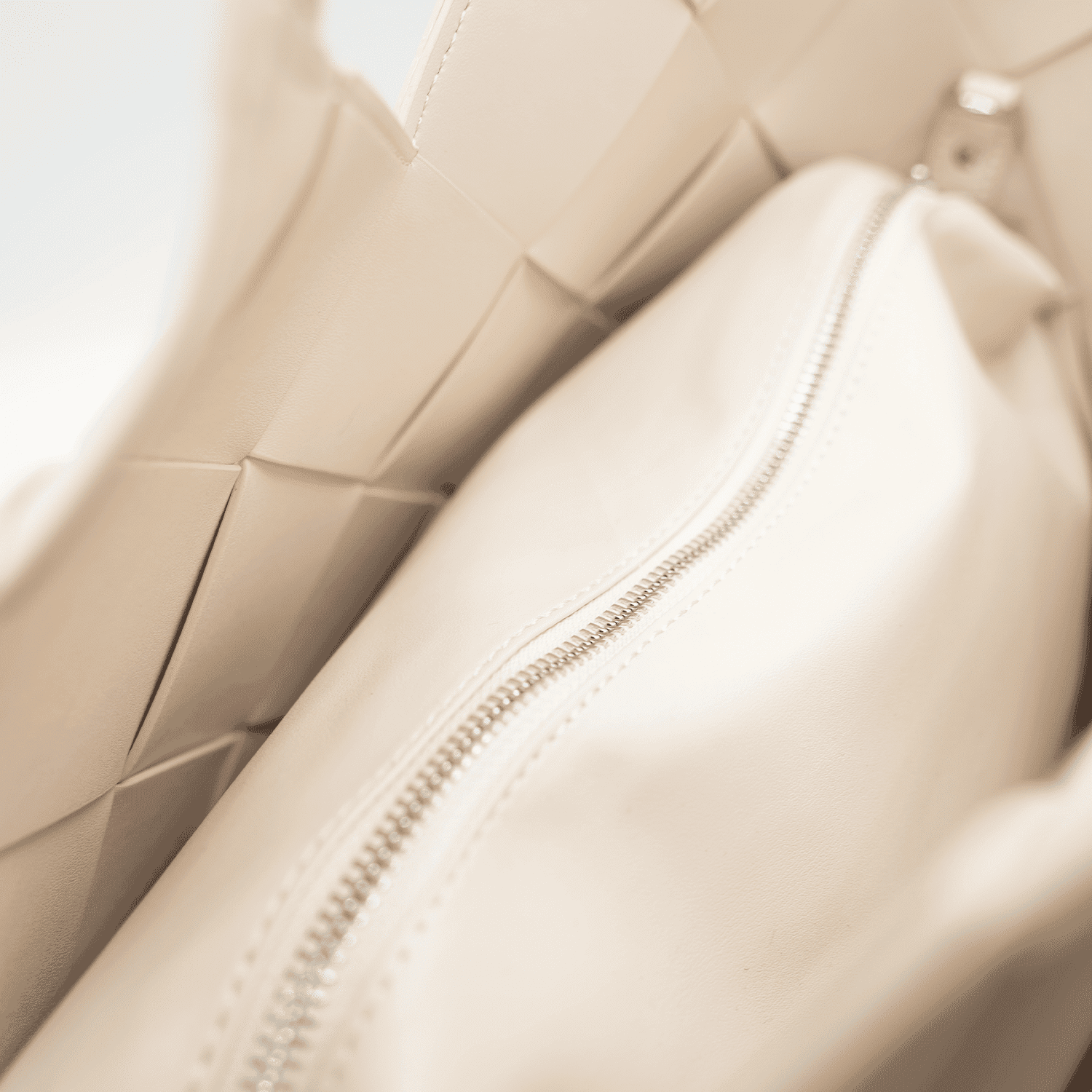 Spacious. Refined. Functional. A combination of style and practicality. With a modern and linear design, the Musa bag is made of calfskin with a maxi woven pattern.