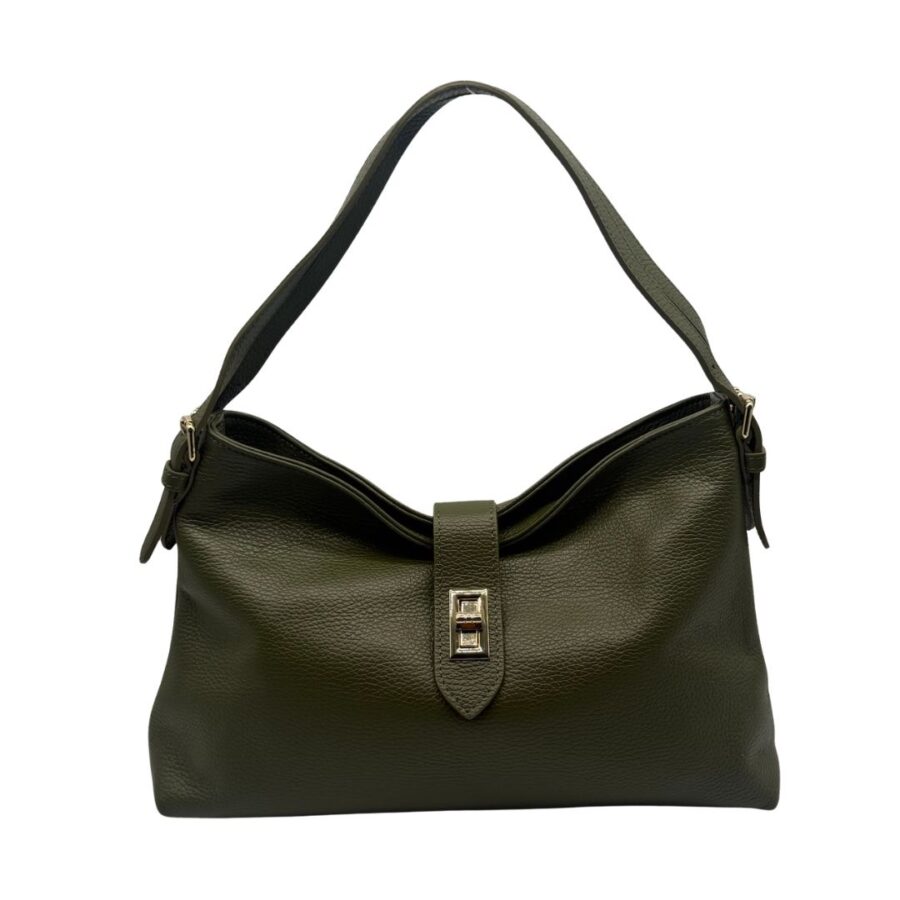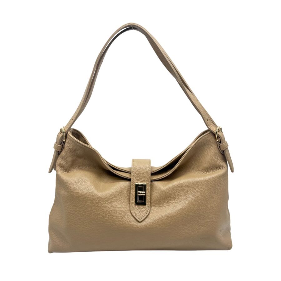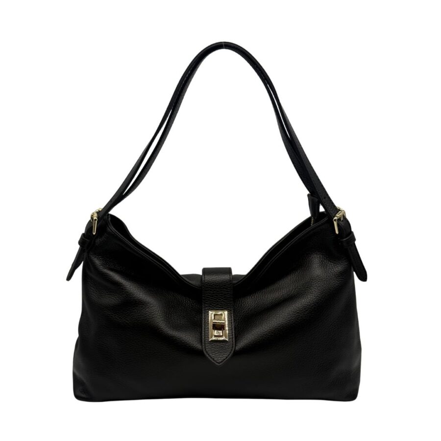 Made in Italy. Chiusura con staffa dorata e tracolla regolabile per portarla anche crossbody.