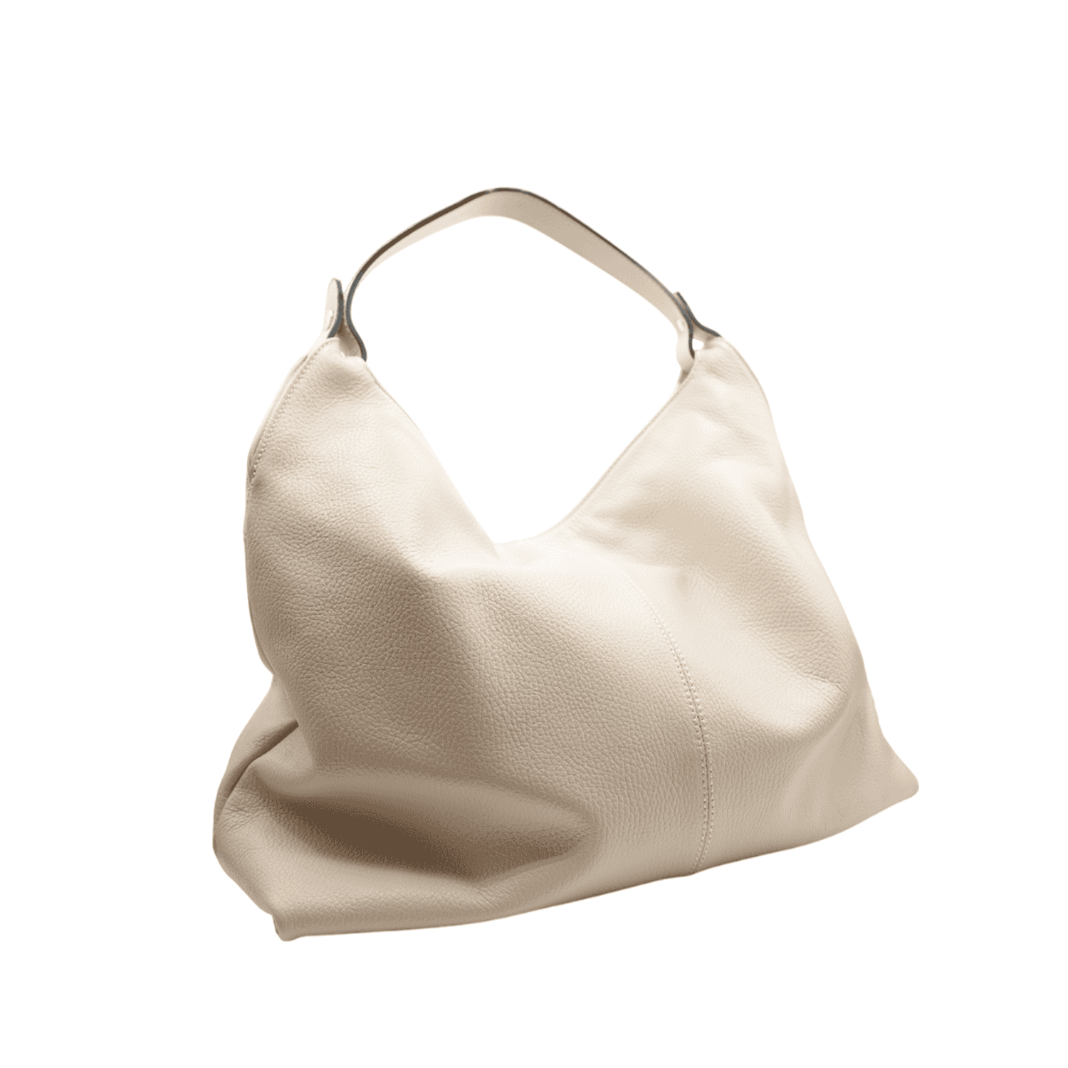 Realizzata in pelle di vitello, disponibile nei toni cuoio, nero e beige avorio, questa maxi borsa a spalla è perfetta per ogni occasione.