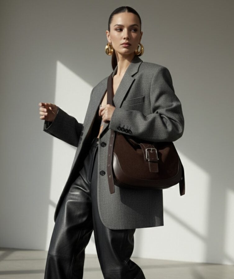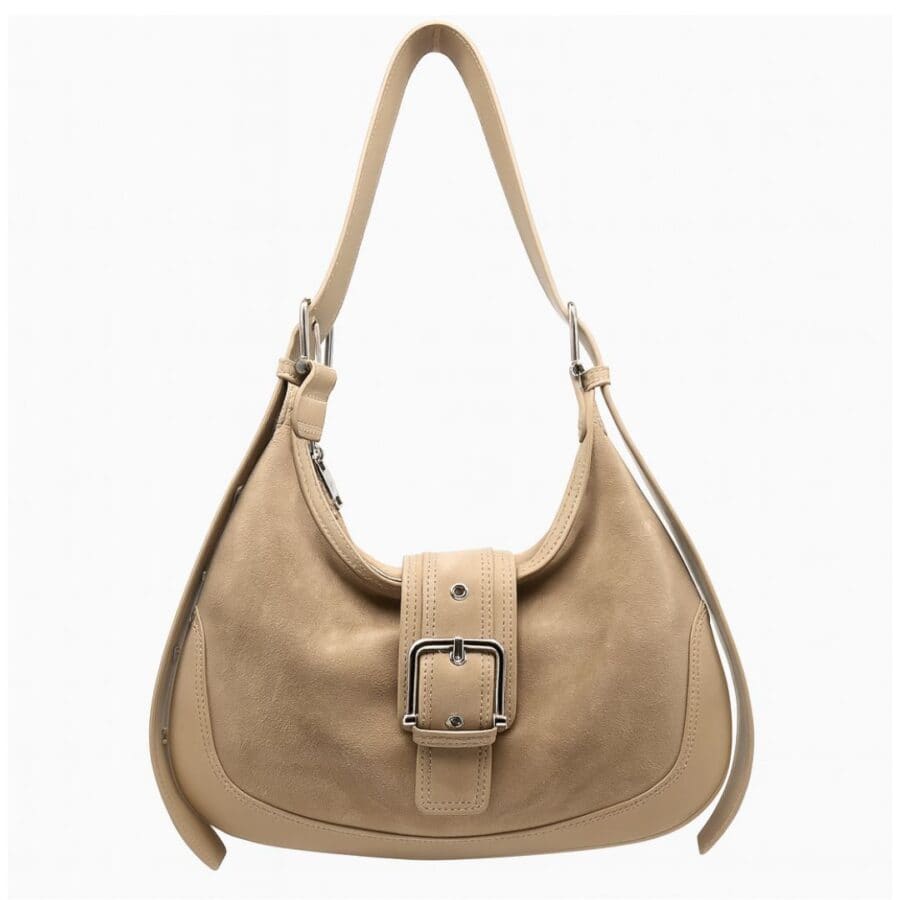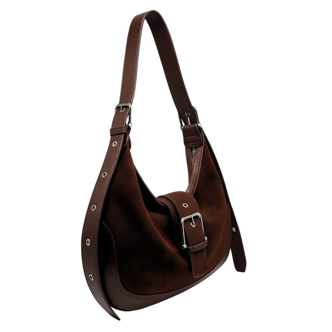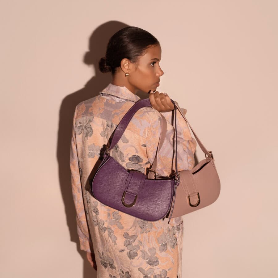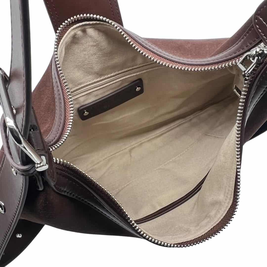 La Carrie combina pelle scamosciata e vitello in un design lineare e moderno, con interno spazioso, tasche organizzate e chiusura con zip e calamita. Completa di tracolla regolabile per doppio styling.