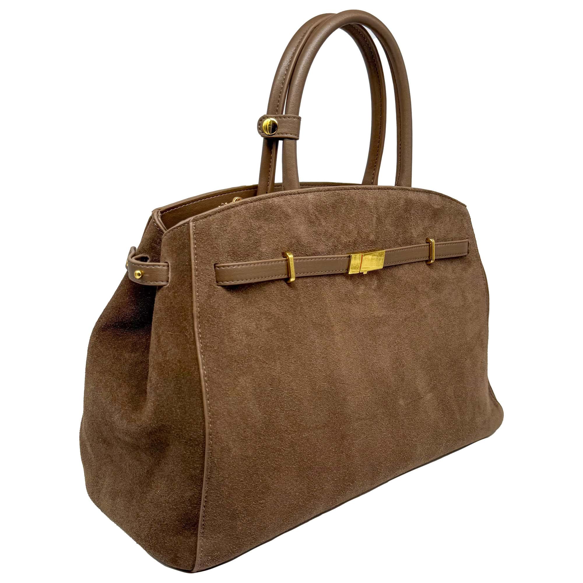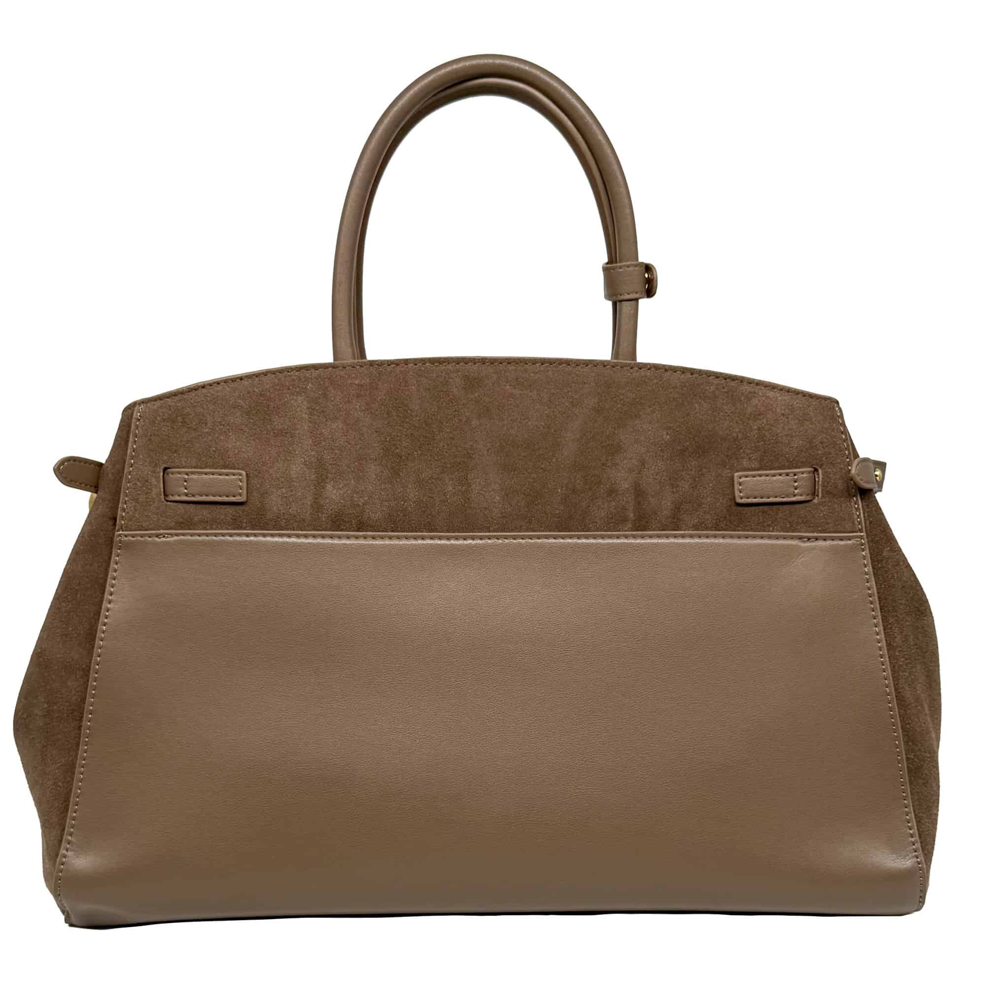 La Olimpia è una tote in pelle di vitello con doppia maniglia, ampio comparto interno e tasche organizzate. Chiusura a zip e tracolla regolabile per indossarla anche crossbody.