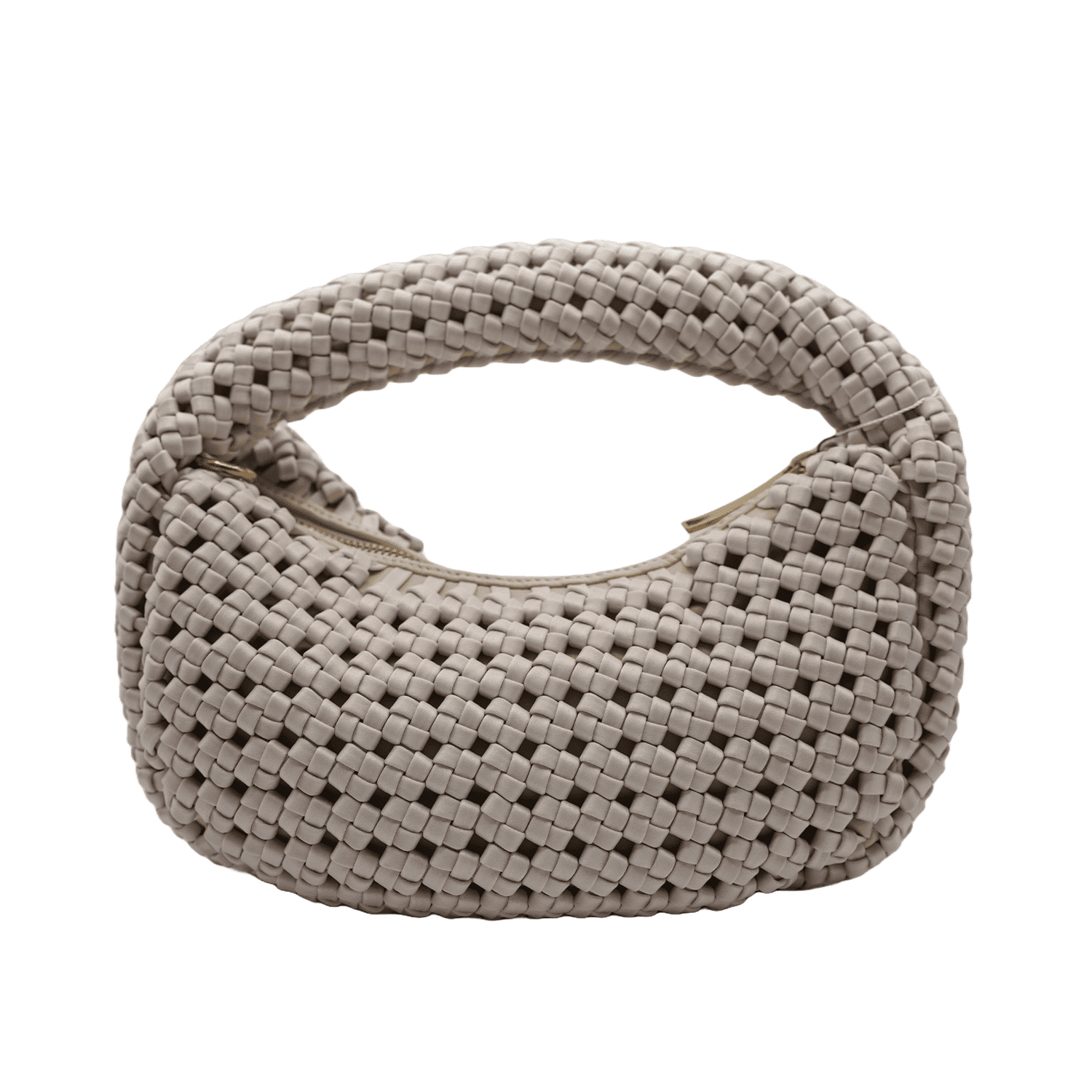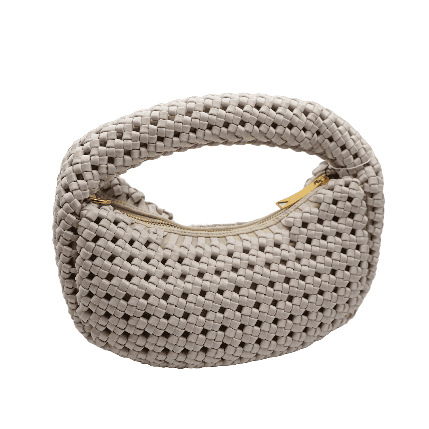 Borsa Twist, modello hobo, realizzata in pelle di vitello e rivestita da un particolare intreccio in tessuto / tessuto con motivo intrecciato. Presenta una morbida maniglia tubolare che permette di indossare la borsa a mano o comodamente a spalla.