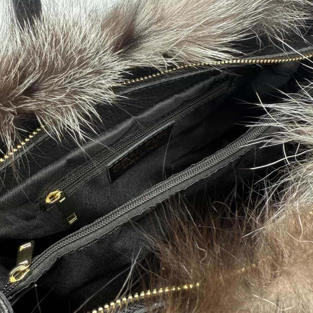 The bag features an elegant and functional construction, made of handcrafted calfskin, 100% Made in Italy. The essential silhouette is enhanced by the soft elegance of real black fur.