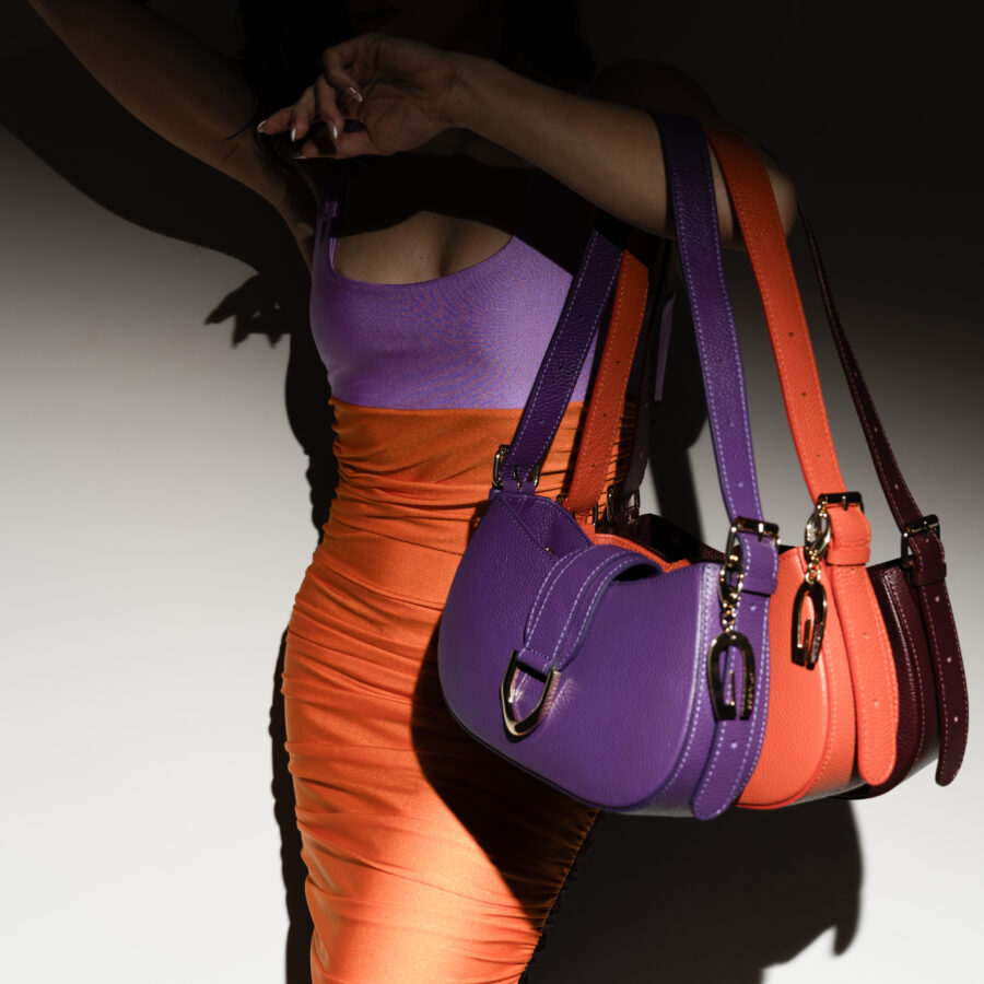 La Borsa Sofia è un tributo alla femminilità moderna con il suo design a baguette e una palette di colori che include arancio, nero, rosa, rosso e viola. Perfetta per chi desidera essere elegante e allo stesso tempo audace.