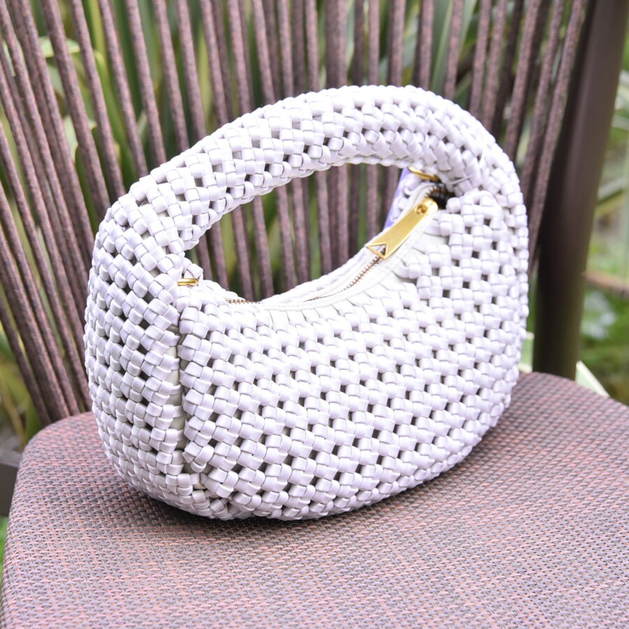 Innovativa, chic e moderna.Borsa Twist, modello hobo, realizzata in pelle di vitello e rivestita da un particolare intreccio in tessuto / tessuto con motivo intrecciato. Presenta una morbida maniglia tubolare che permette di indossare la borsa a mano o comodamente a spalla.
