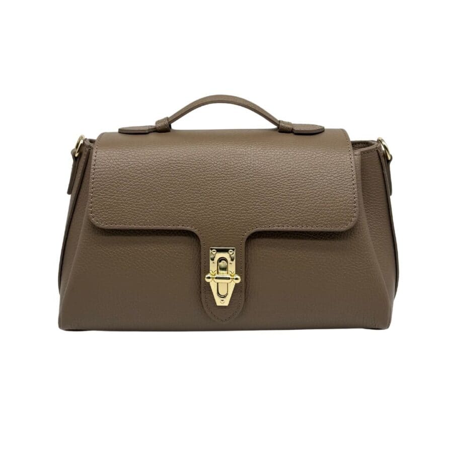 La Alba valorizza la sua silhouette pulita in pelle di vitello con una raffinata chiusura in oro chiaro. Capiente e versatile, si porta a mano o crossbody grazie alla tracolla regolabile. Interni in gabardine di cotone.