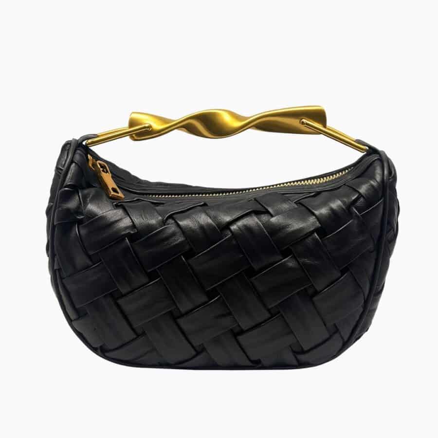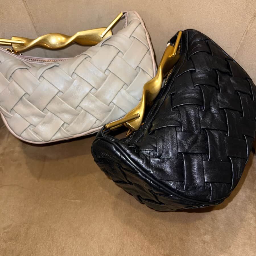La silhouette essenziale della borsa Clara è esaltata dall’eleganza della chiusura in oro chiaro con accessorio a girello.