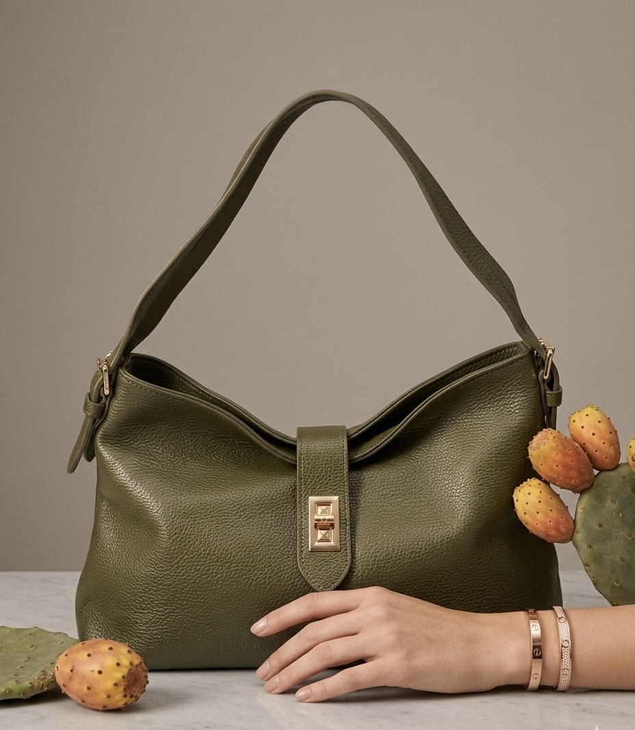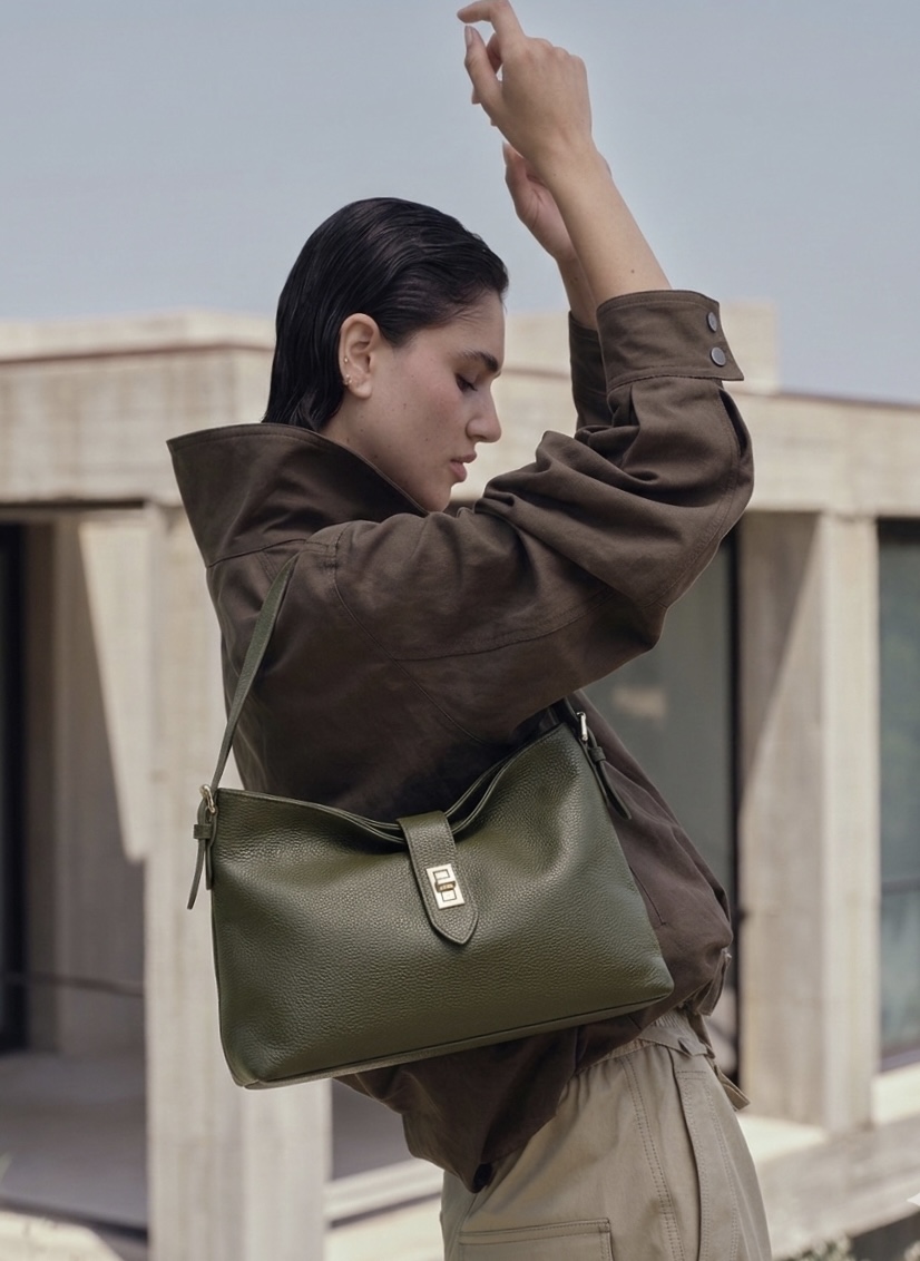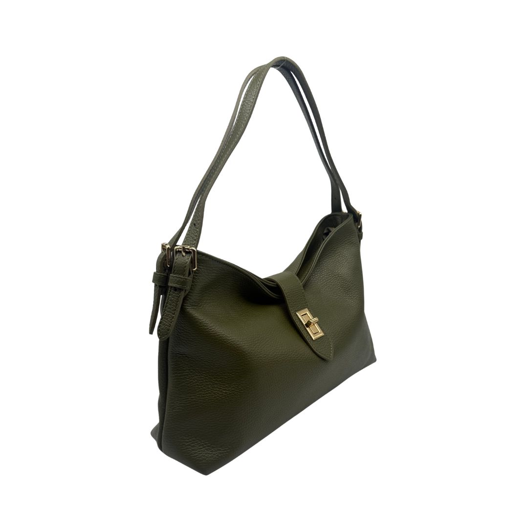 Grazie alla sua costruzione versatile, si può indossare a spalla o crossbody con la sua tracolla regolabile. Doppia maniglia in pelle. L’interno è ampio e spazioso, la fodera è realizzata in tessuto gabardine di cotone. Chiusura con cerniera. Lavorazione artigianale, Made in Italy.