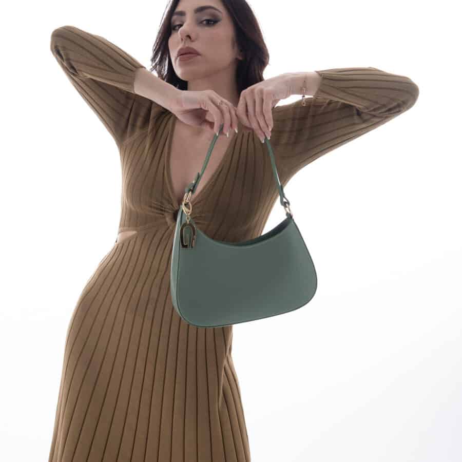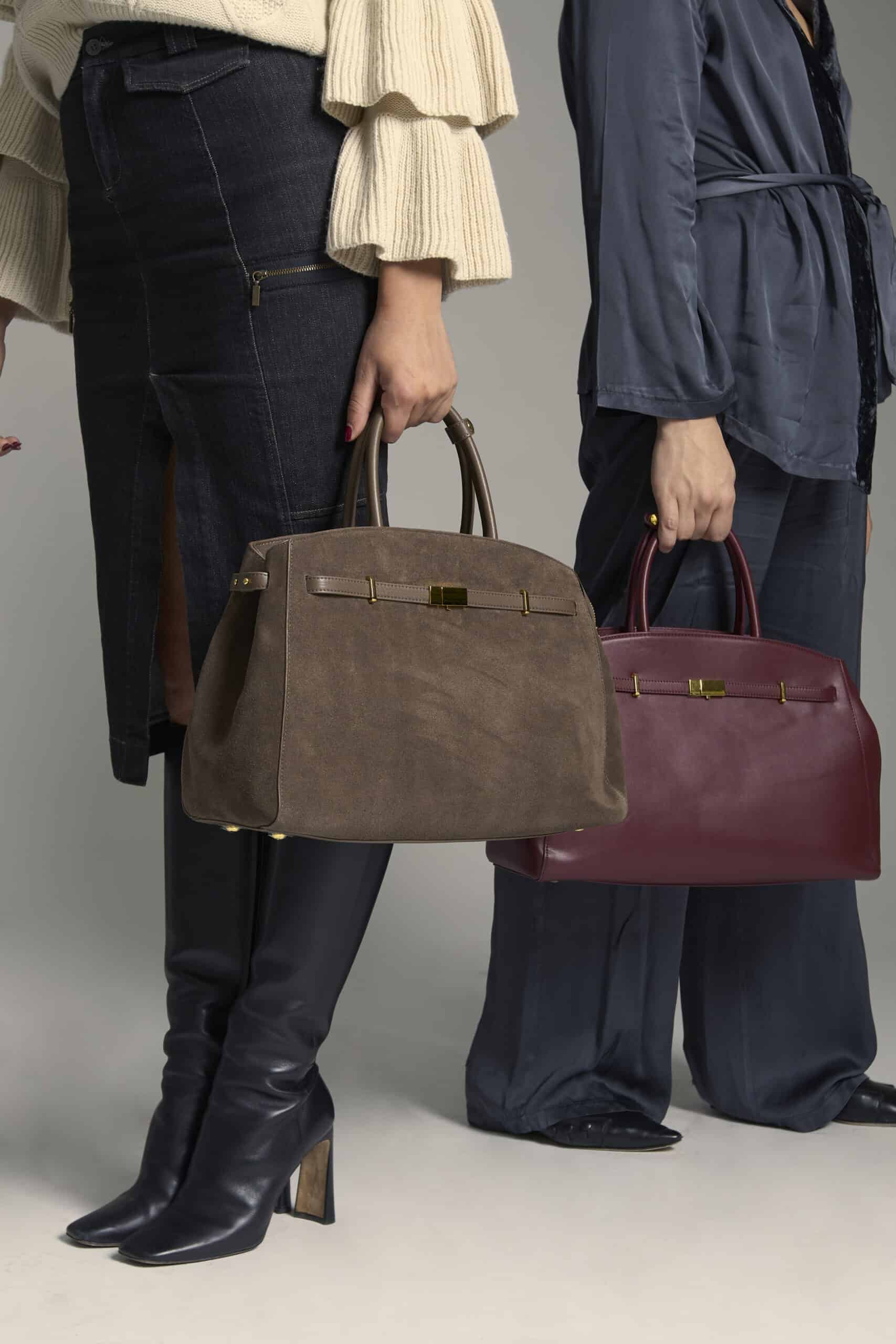 La Olimpia è una tote in pelle di vitello con doppia maniglia, ampio comparto interno e tasche organizzate. Chiusura a zip e tracolla regolabile per indossarla anche crossbody.