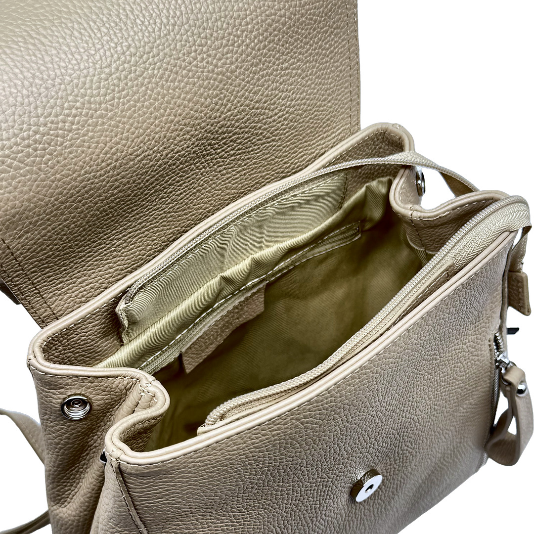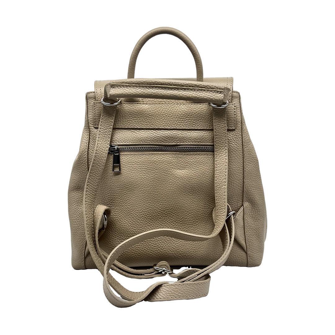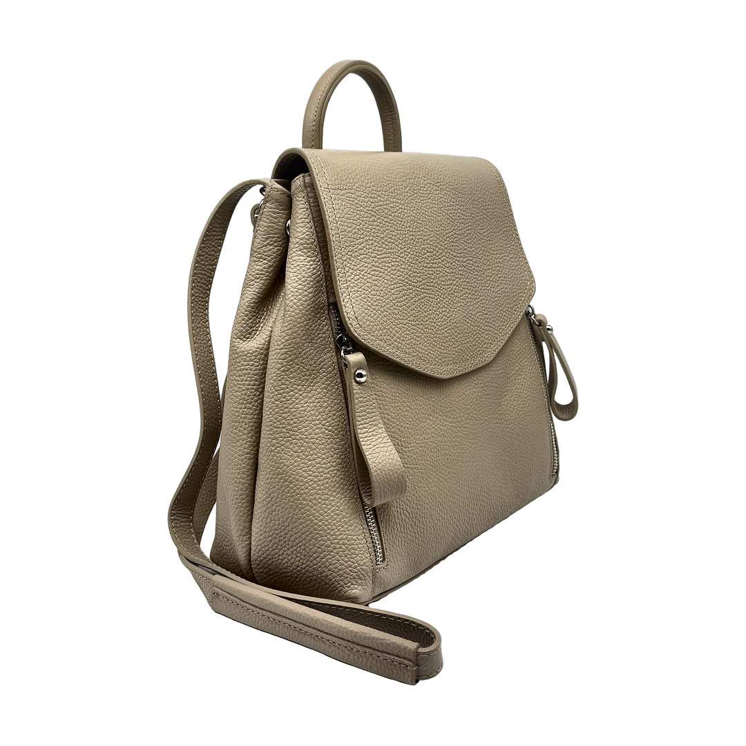 Capiente, compatto, funzionale. Silhouette easy chic, dal design moderno e lineare, lo zaino Sally, dalle medie dimensioni, è realizzato in morbida pelle di vitello e può trasformarsi in una comoda borsa. Perfetto per completare i tuoi outfit quotidiani con stile e funzionalità, il modello è dotato di spallacci regolabili e presenta una chiusura interna con zip e bottone magnetico. L’interno è ampio e spazioso. La fodera è realizzata in tessuto gabardine di cotone. Lavorazione artigianale, Made in Italy.
