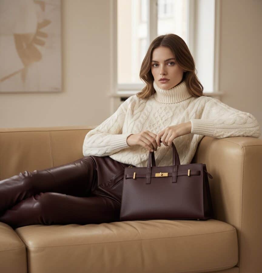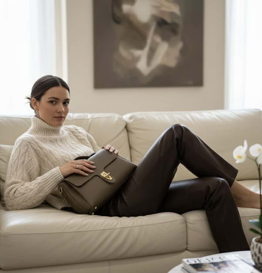 La Clara abbina una silhouette pulita in pelle di vitello a una chiusura in oro chiaro con girello. Funzionale e capiente, con doppia maniglia tubolare, comparti interni organizzati e tracolla regolabile per portarla anche crossbody.
